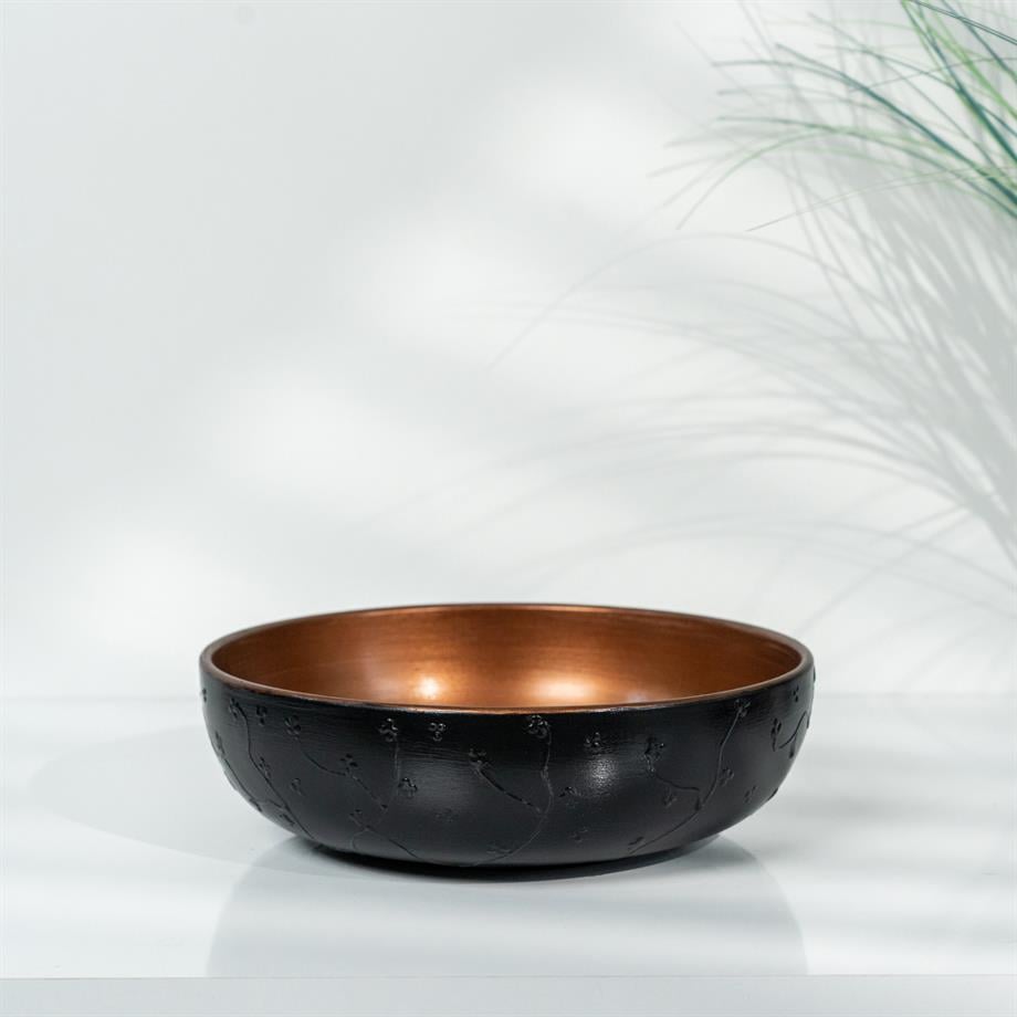 Bakırdan Collection Aura Dual Globe Sculptural Vase Set Matte Black with Copper Interior