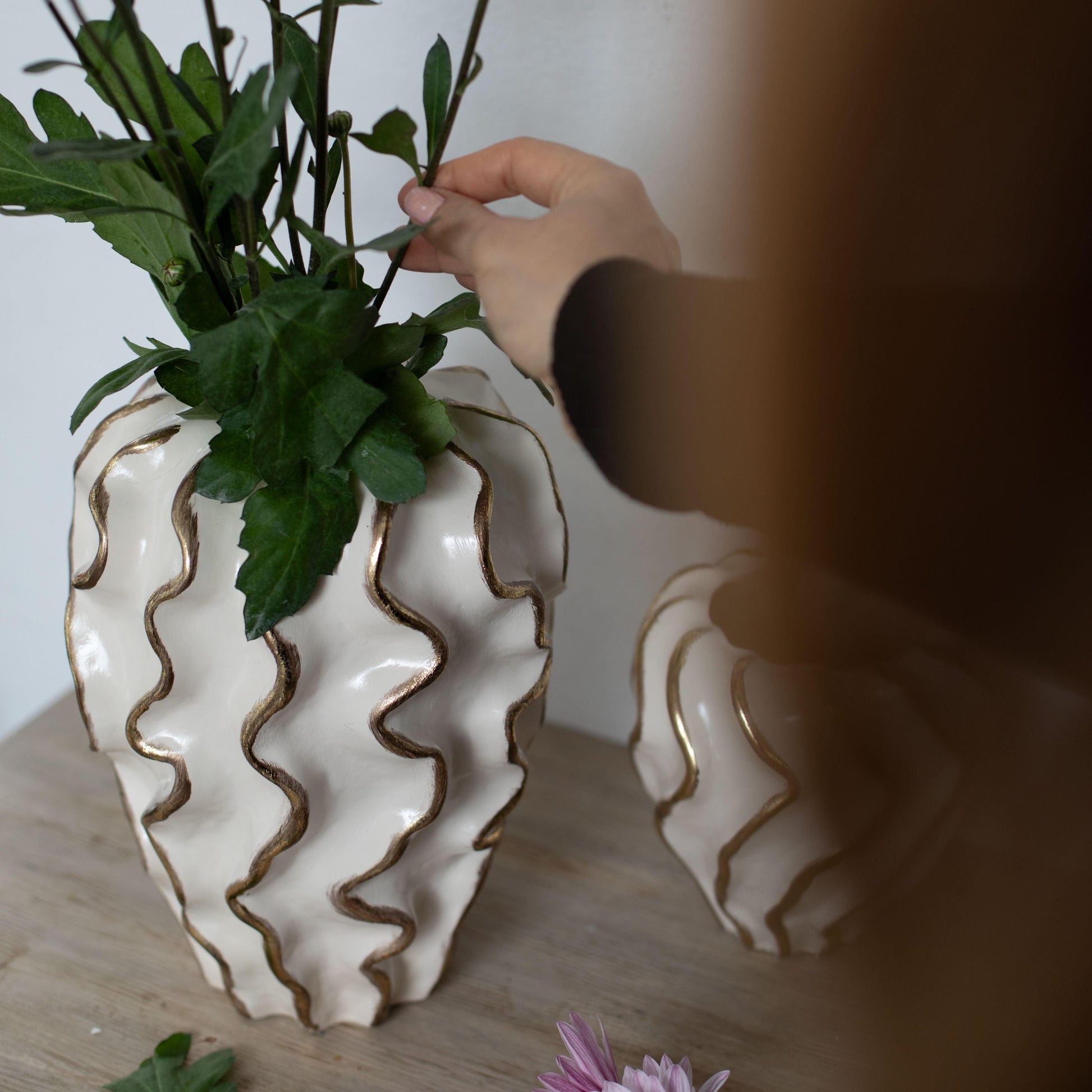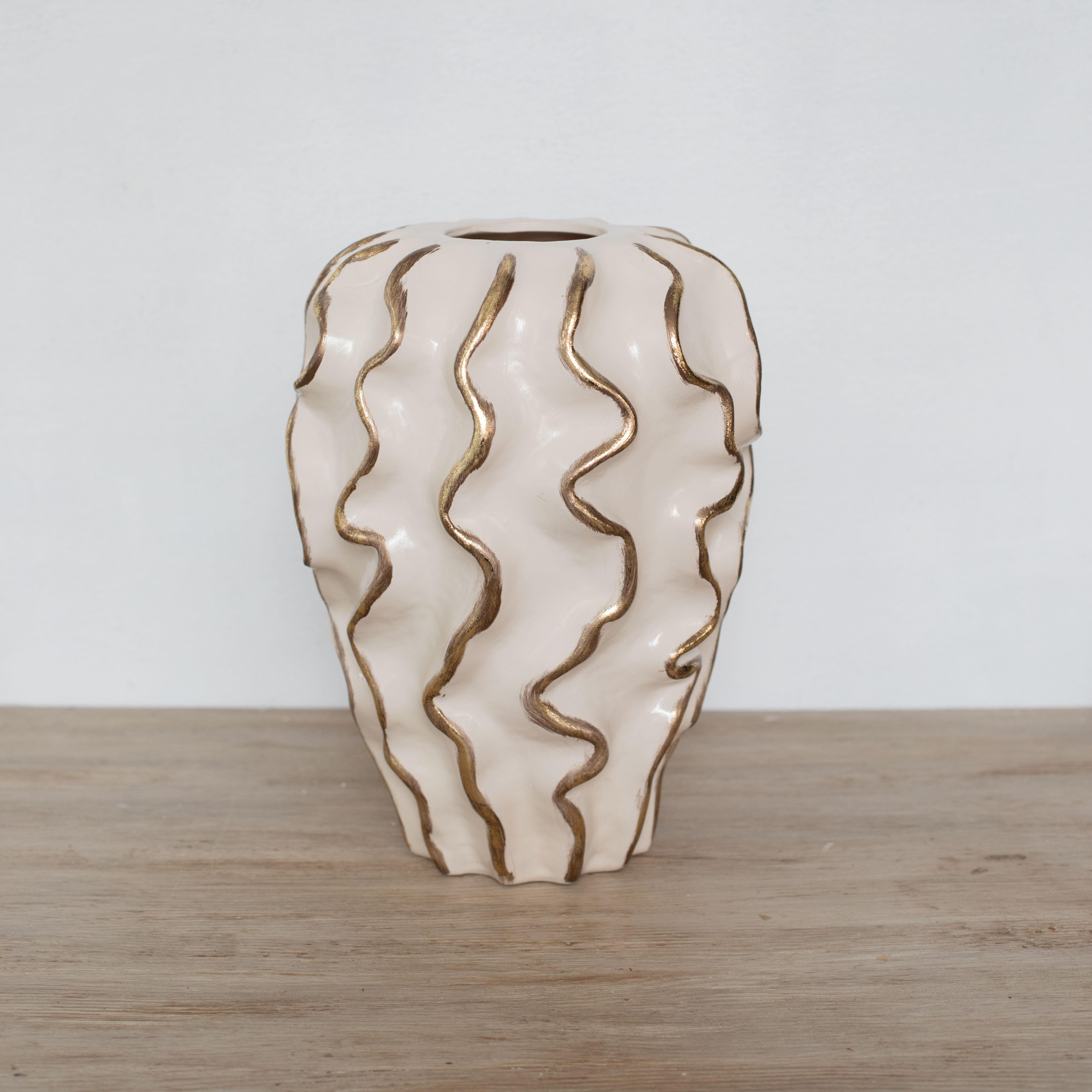 Moderna Volante Grande Handmade Gilded Wave Vase Cream Ceramic