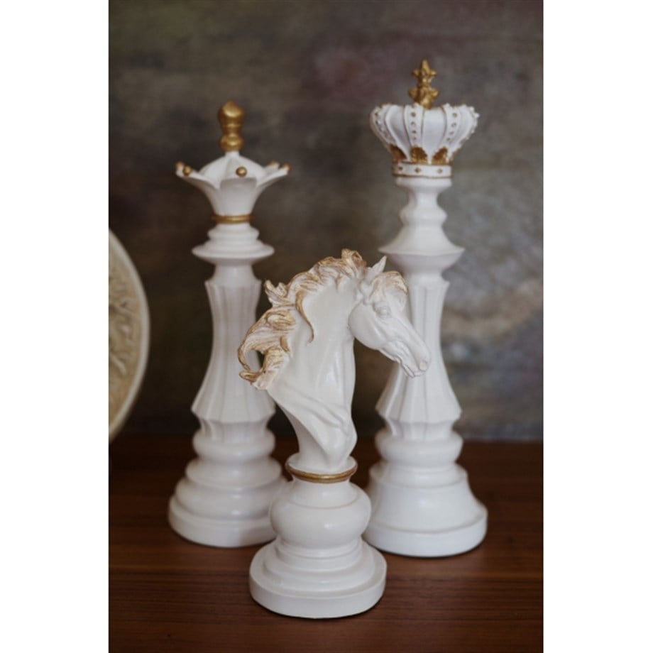 Each Royal Strategia Chess Realm Triple Sculpture Set is individually cast, sanded and painted by hand. Subtle differences in brush strokes, gold intensity and shading across the mane and crowns are intentional and part of the design language, echoing the character of traditional art pieces rather than factory perfect objects. This makes every trio slightly unique – a personal, sculptural reminder of strategy, ambition and refined taste in your space, whether you choose the luminous Ivory Gold or the dramatic Noir Gold variation.