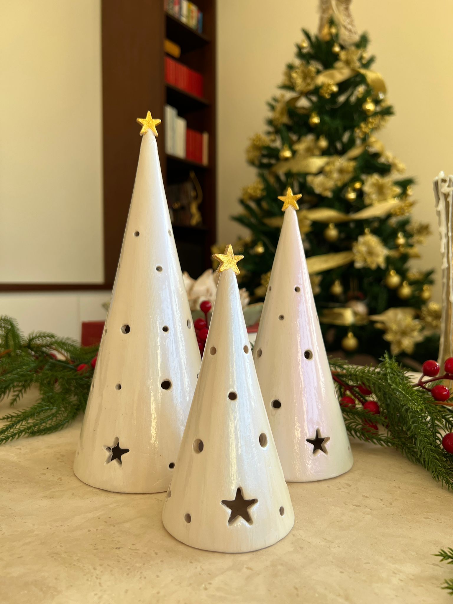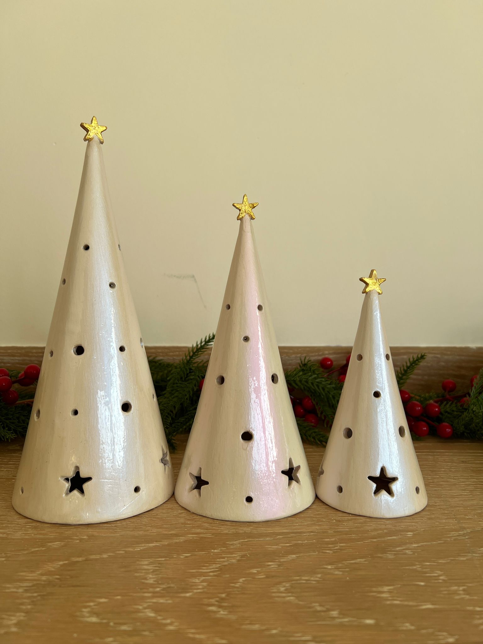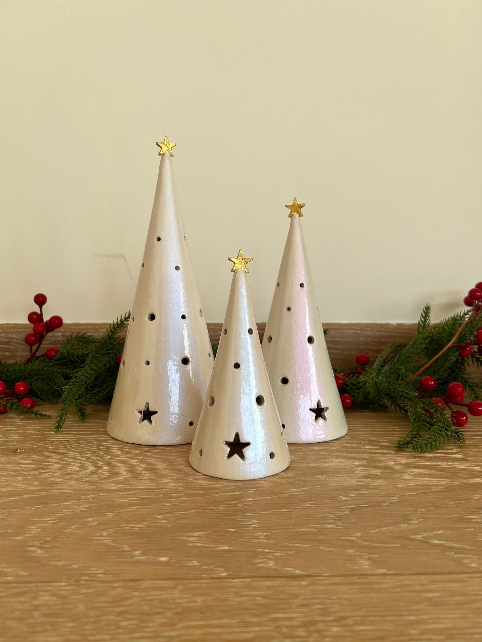 Conical Tree Ceramic Candle Holder Handmade Multicolour 24cm