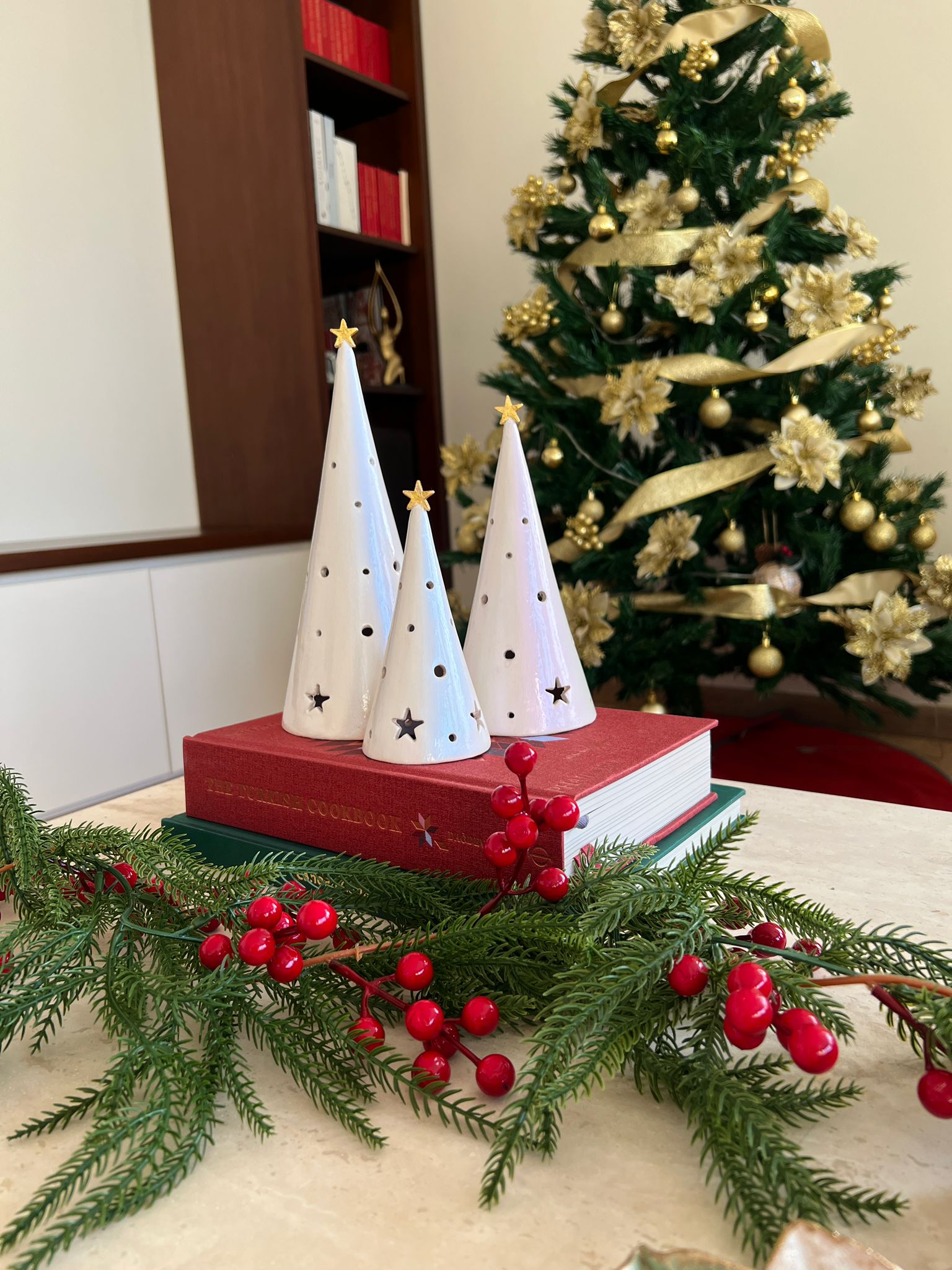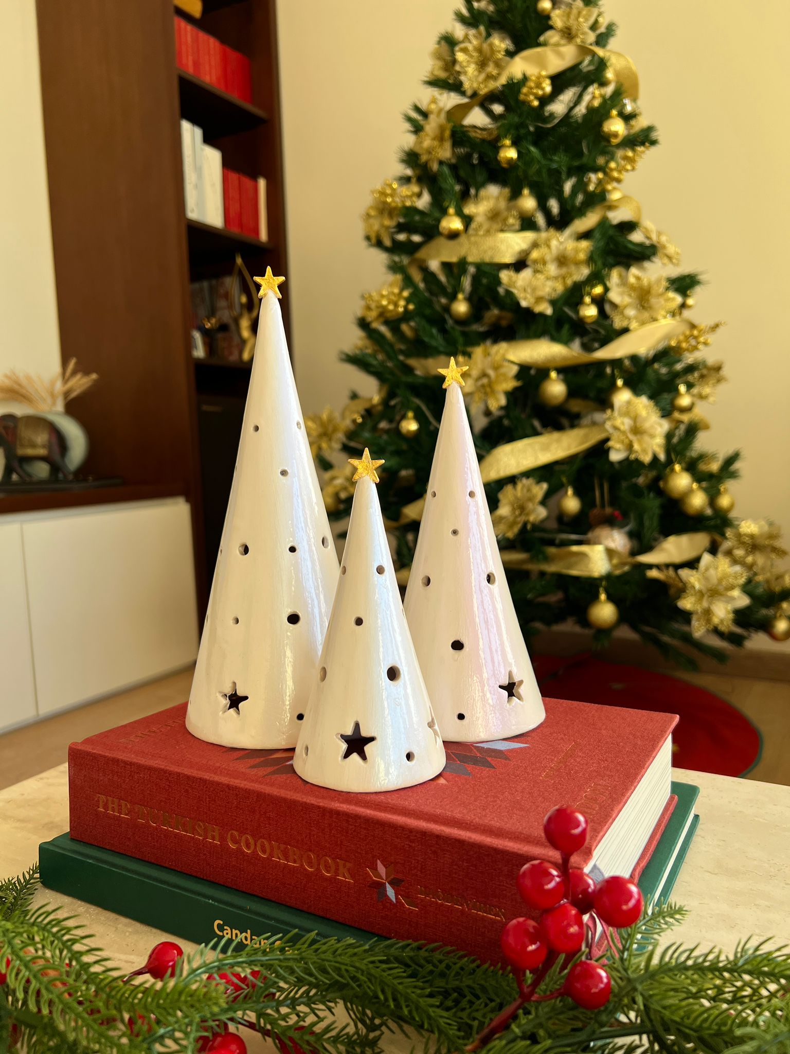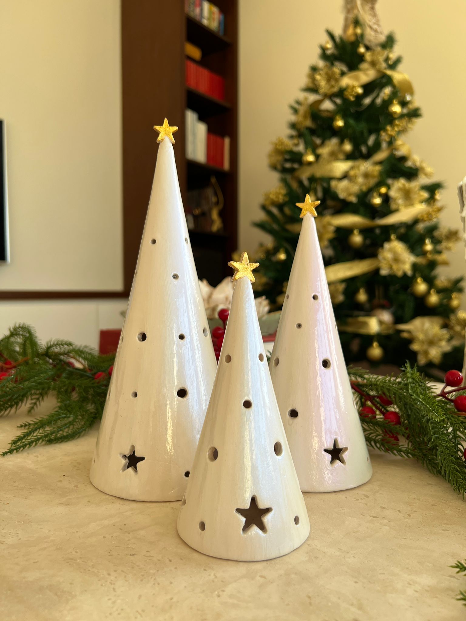 Conical Tree Ceramic Candle Holder Handmade Multicolour 24cm