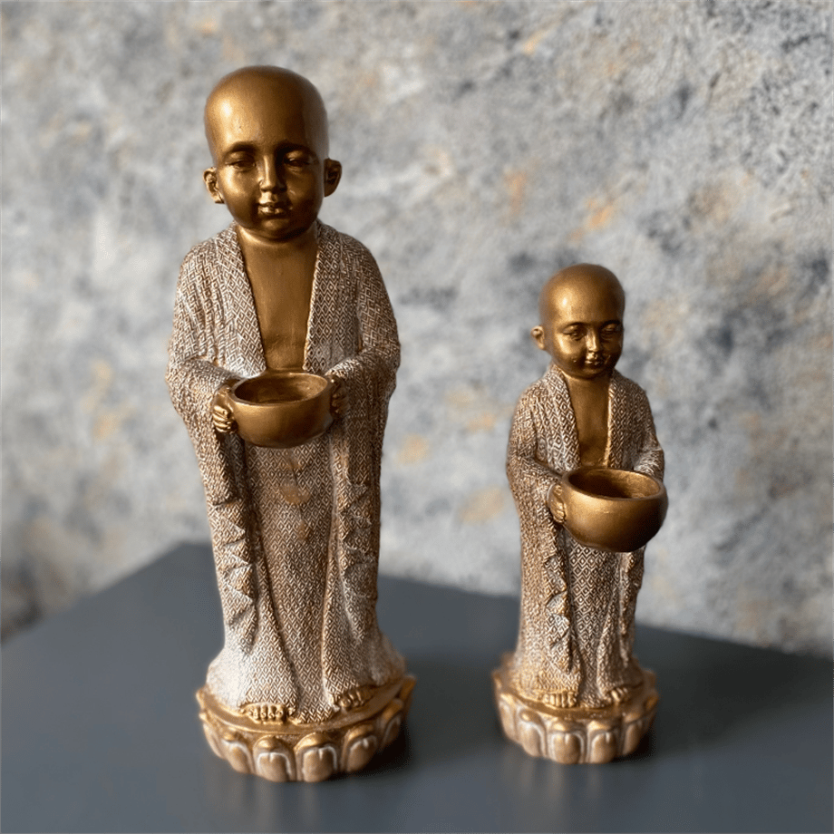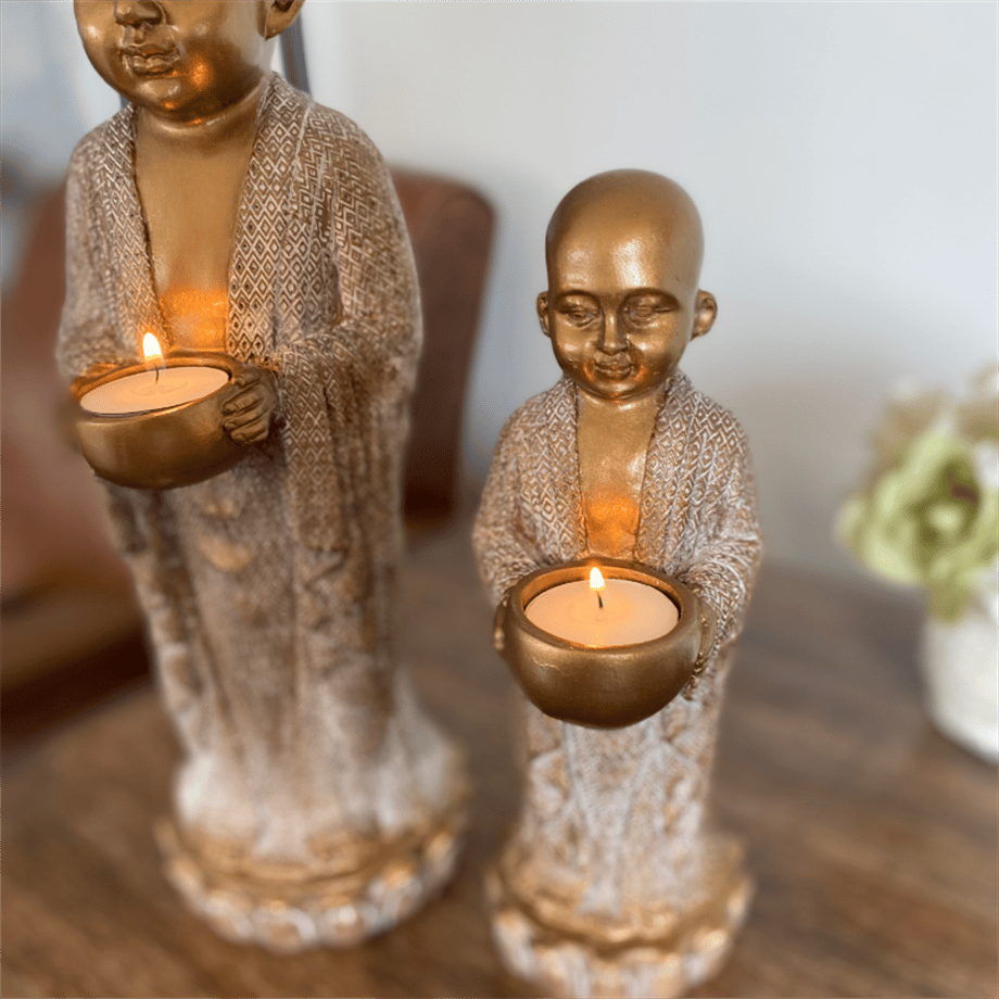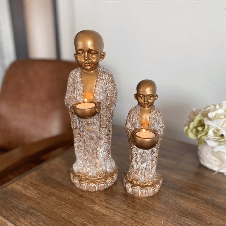 Serenity Monk Handmade Premium Antique Gold Votive Candleholder Duo