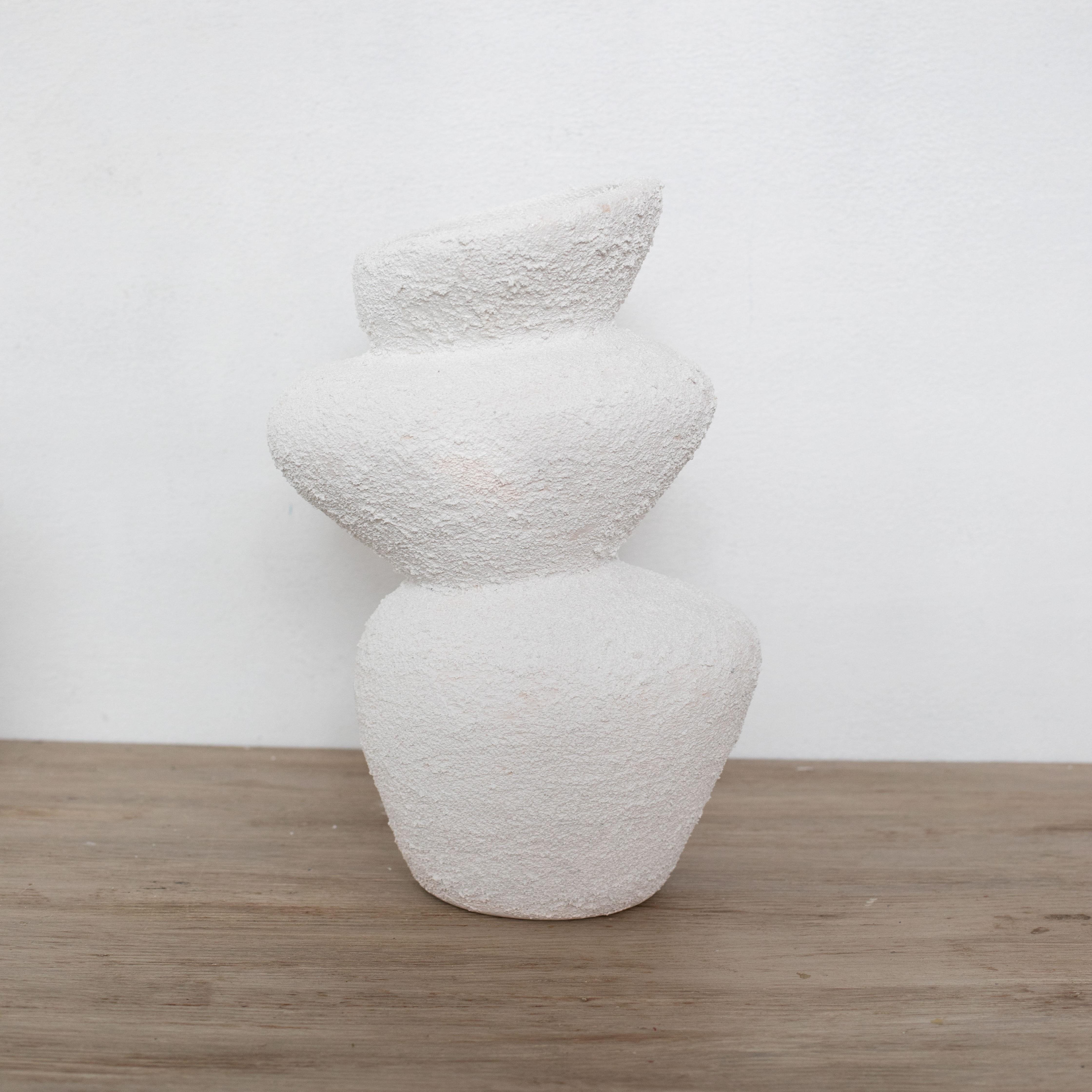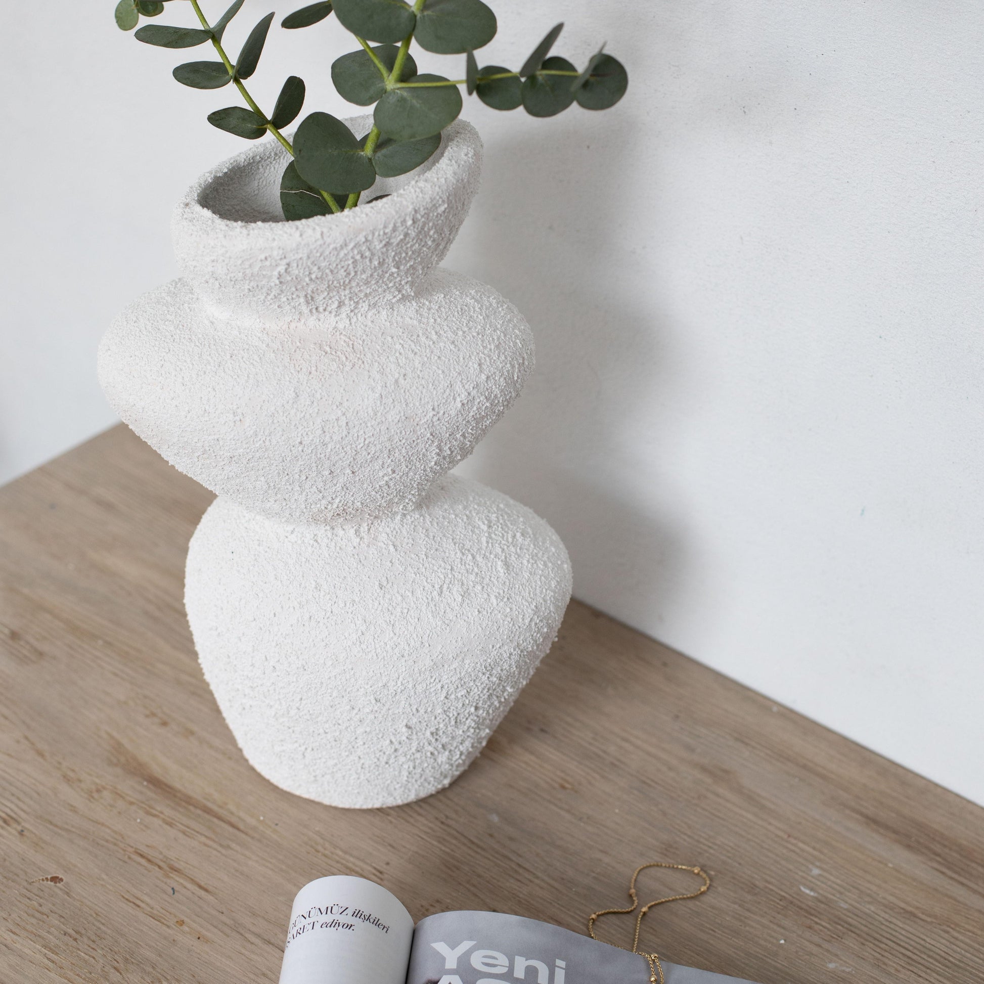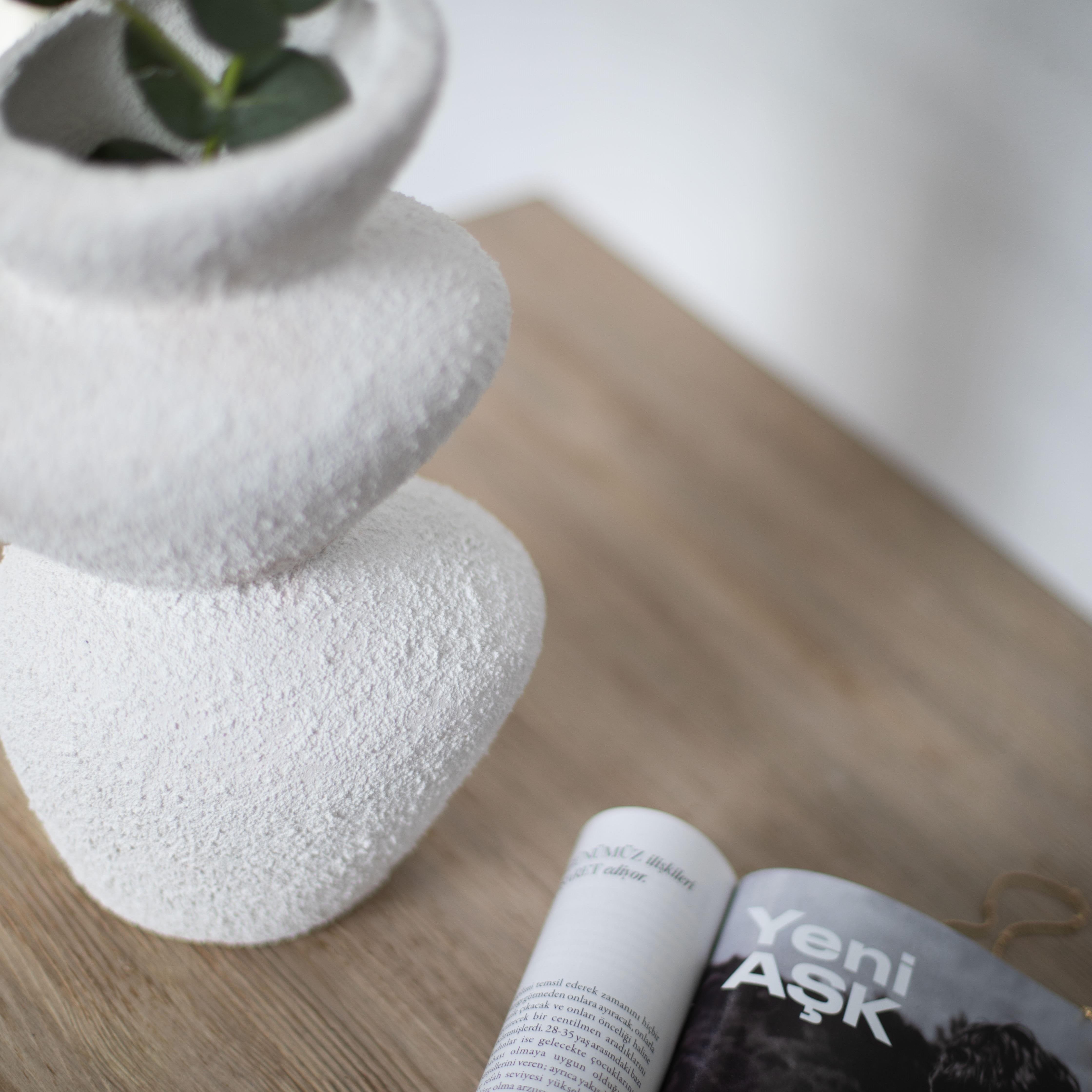Moderna Koleksiyon Seramik Stone Dokulu Vazo El Yapımı Beyaz 30cm
