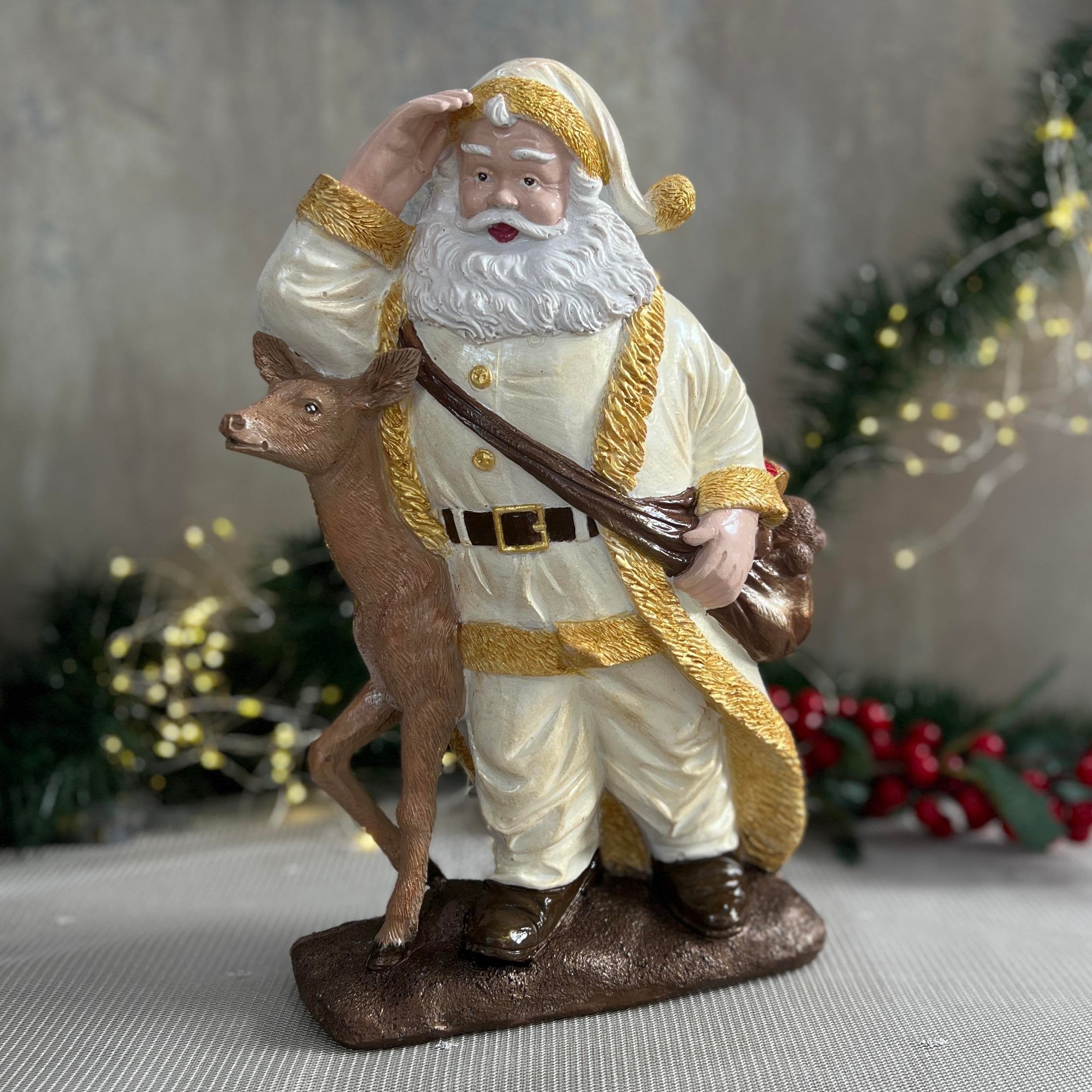 Yavru Geyikli Noel Baba Polyester El Yapımı Çok Renkli 32cm