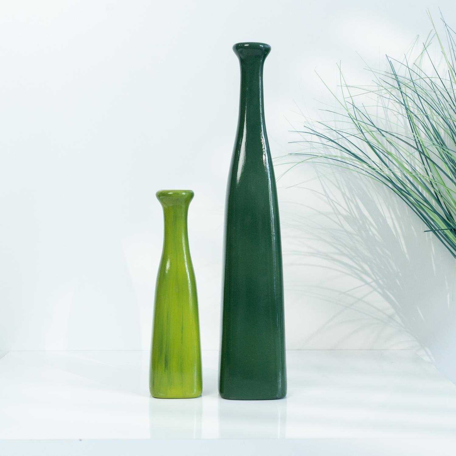 Forest Vazo Seti Seramik El Yapımı İkili Yeşil Tonları 41cm