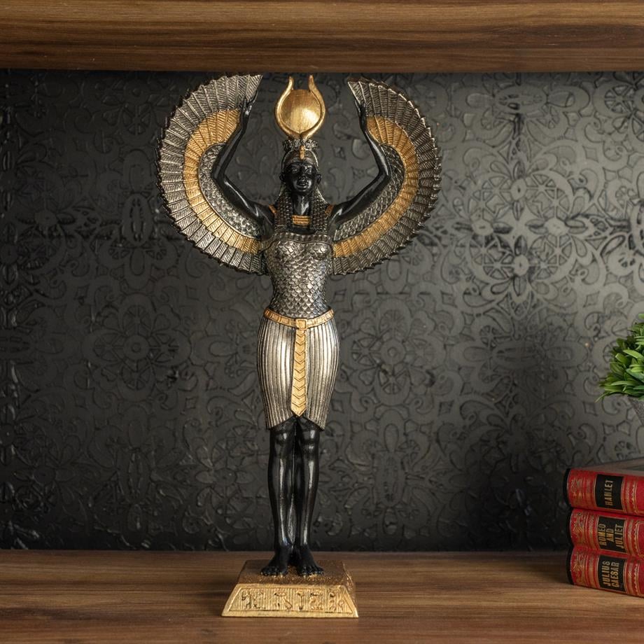 İsis Mısır Tanrıçası Obje Polyester El Yapımı Siyah Antrasit Altın 33cm