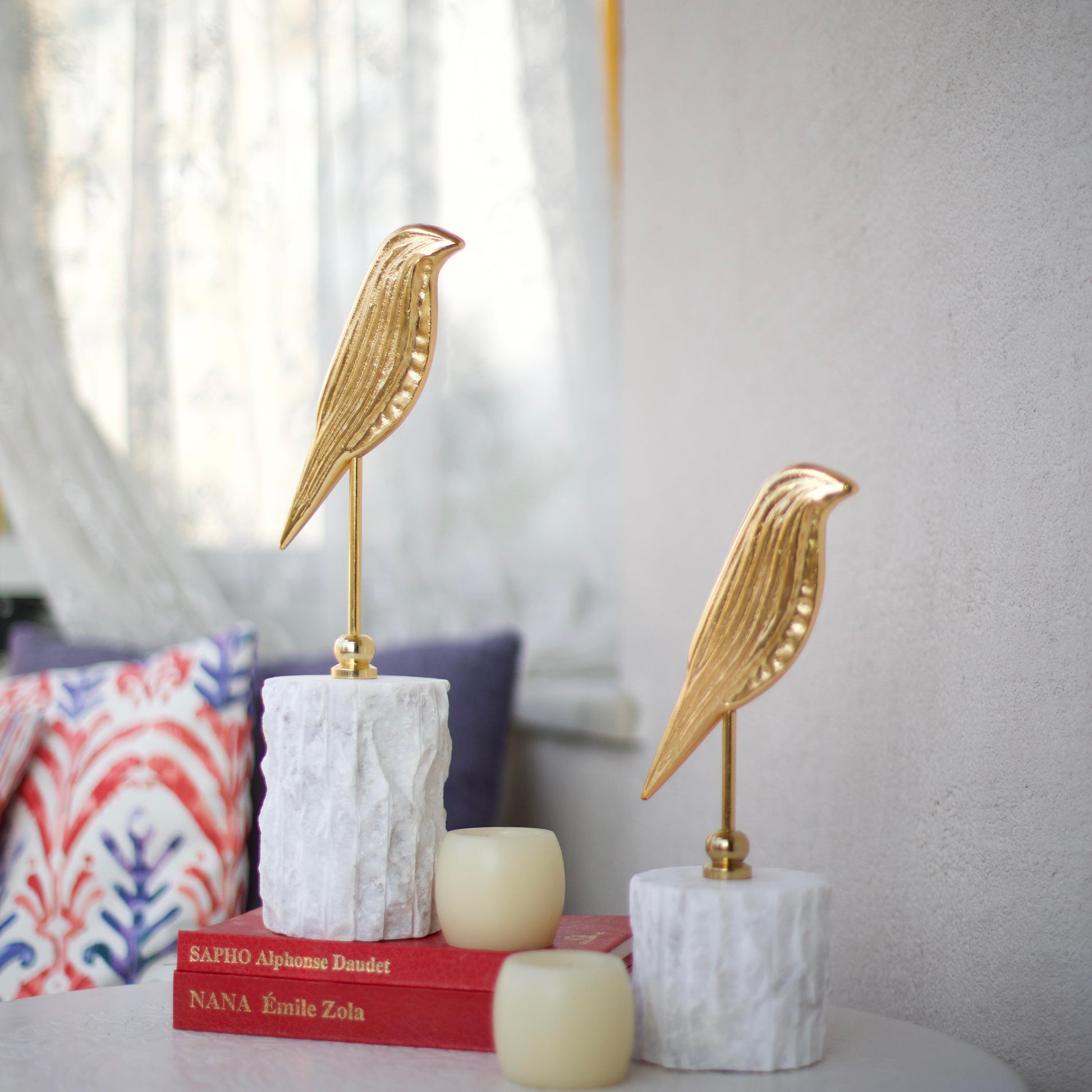 Mermer Kaideli Kuşlar Mermer Döküm İkili Beyaz Altın 33cm