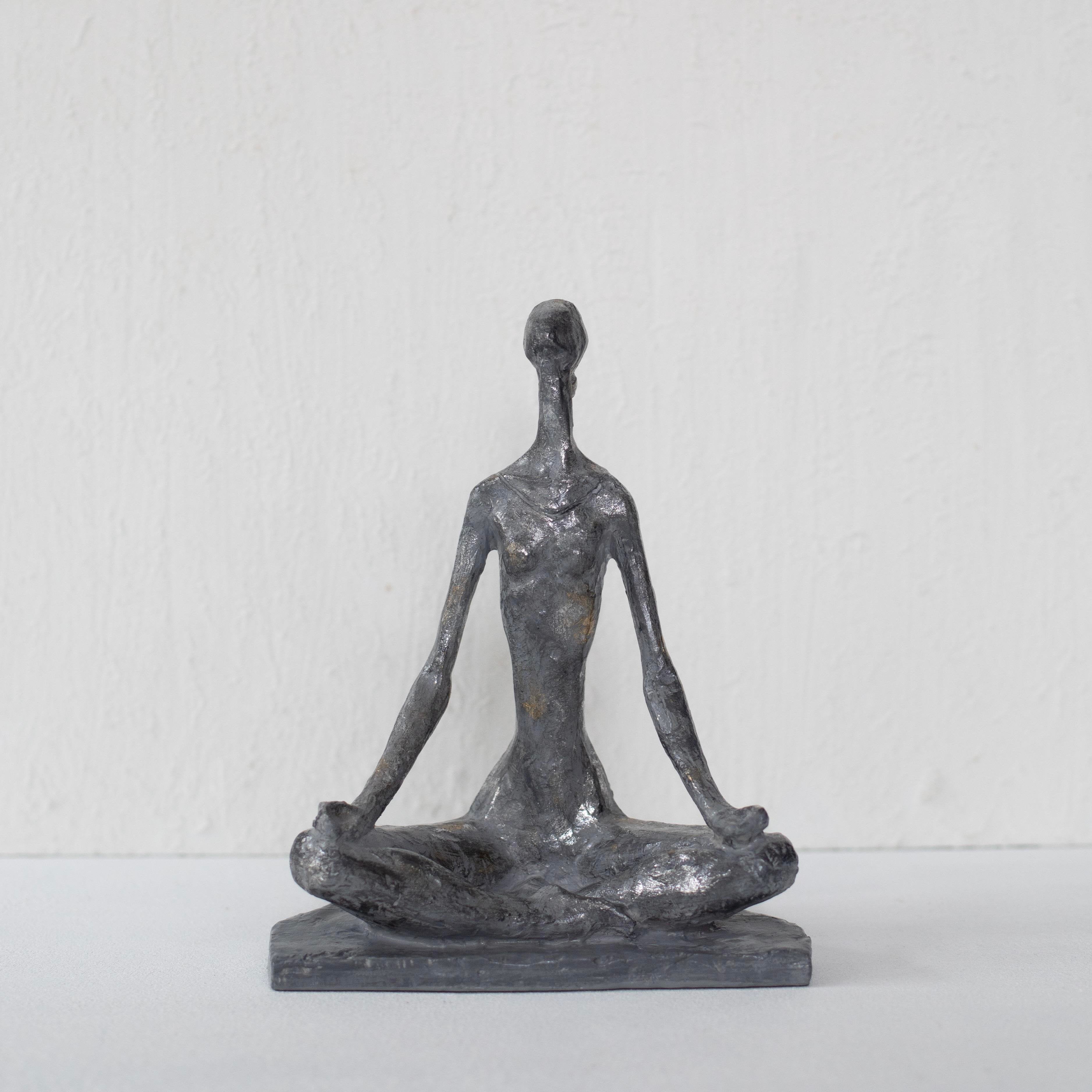 Yoga Yapan Kadın Obje Polyester El Yapımı Gümüş Tonları 26cm