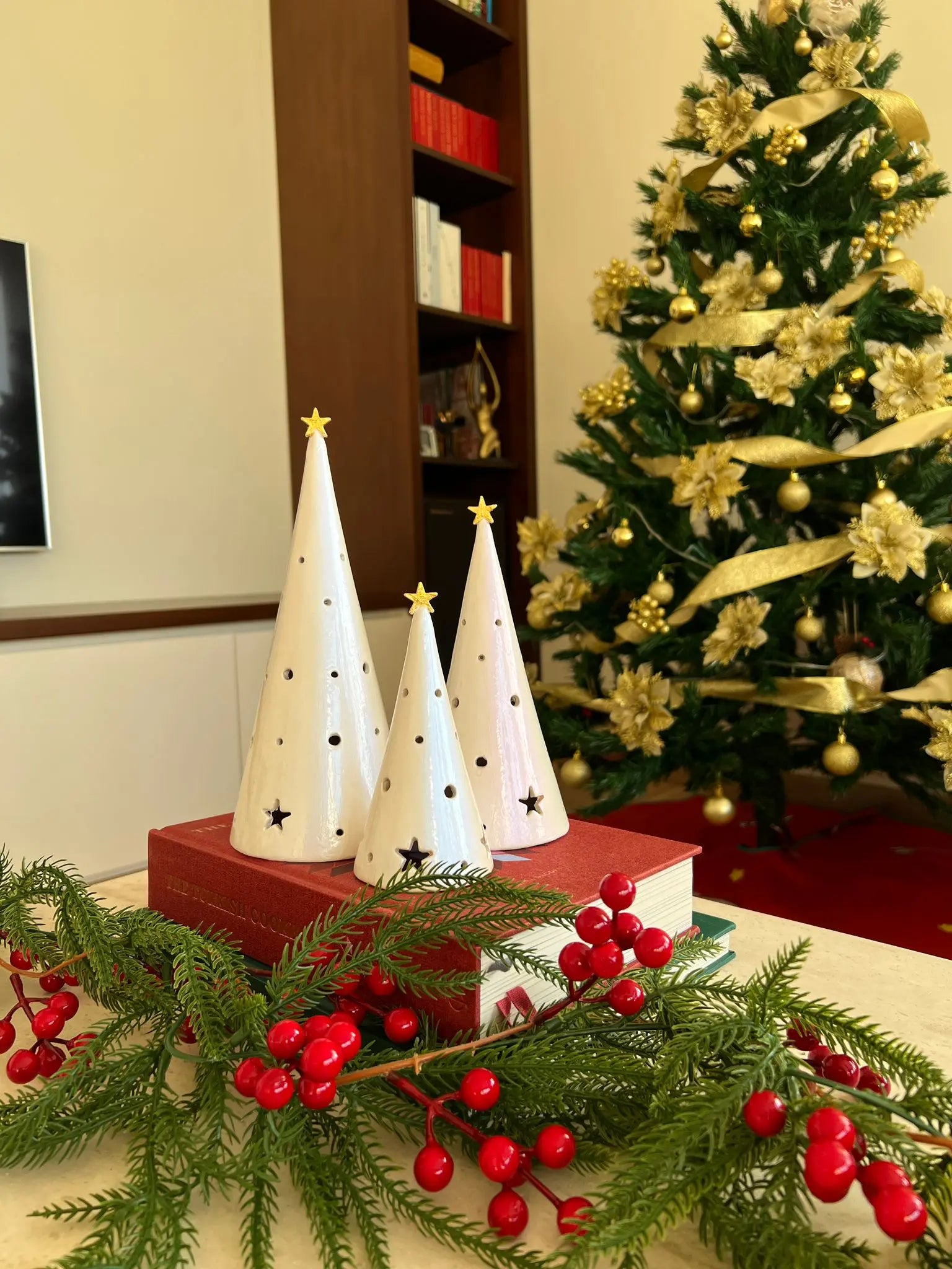 Konik Ağaç Seramik Mumluk El Yapımı Çok Renkli 24cm